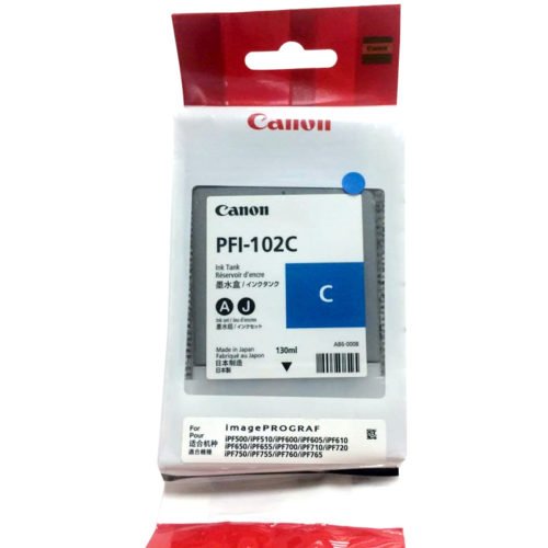 Consommable pour traceur grand format CANON – Cartouche d’encre PFI-102C Cyan 130 ml pour traceurs CANON IPF 500 / 510 / 600 / 605 / 610